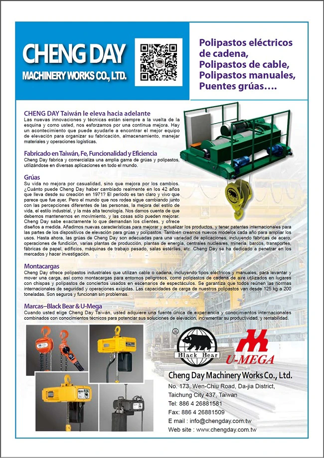 Cheng Day International Group excels in hoisting equipment manufacturing. We have 4 business departments: crane & hoist, elevator, parking system, and heavy duty. We are devoted to marketing plans, product design, manufacturing, tests, installation, and after-sales services.