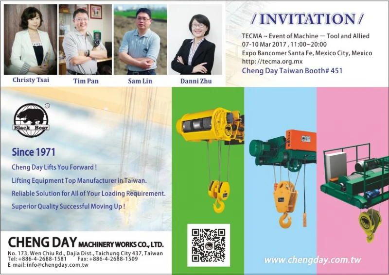 Cheng Day International Group excels in hoisting equipment manufacturing. We have 4 business departments: crane & hoist, elevator, parking system, and heavy duty. We are devoted to marketing plans, product design, manufacturing, tests, installation, and after-sales services.