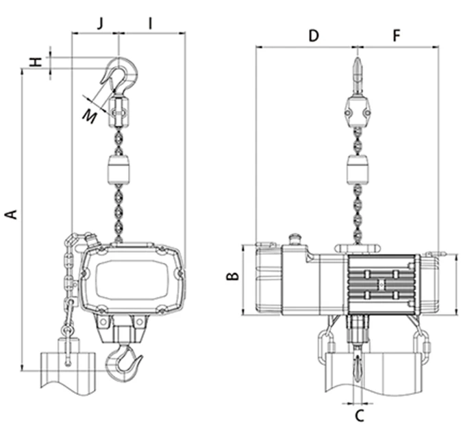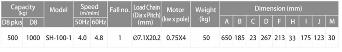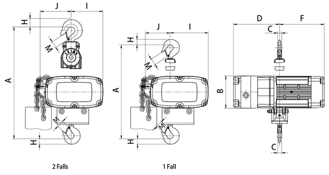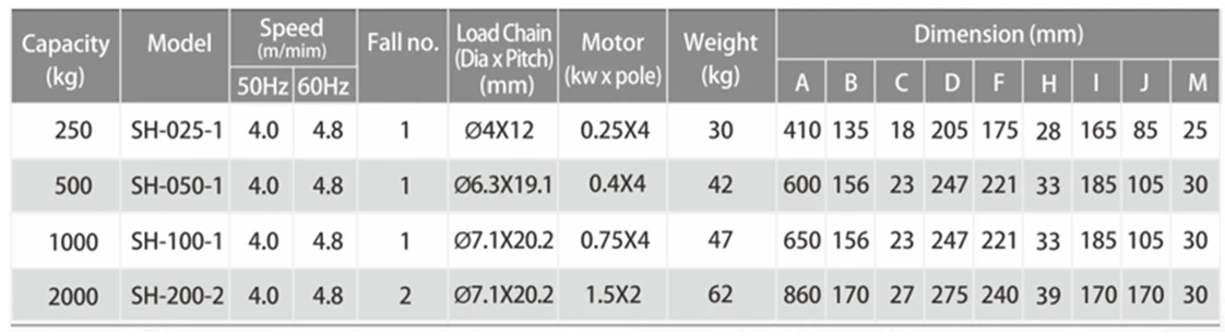 - Duty cycle ED 40% high efficiency, robust motor running the hoist quietly and steady.