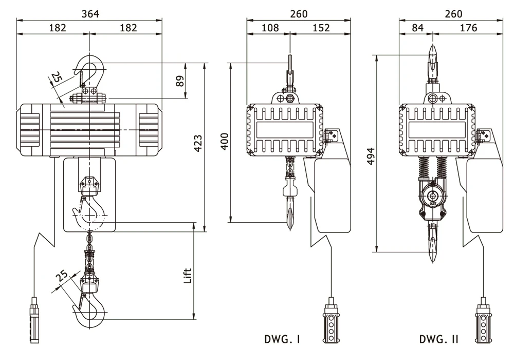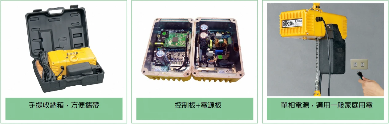 - 吊機僅重16-17kg,結構輕巧,攜帶方便。