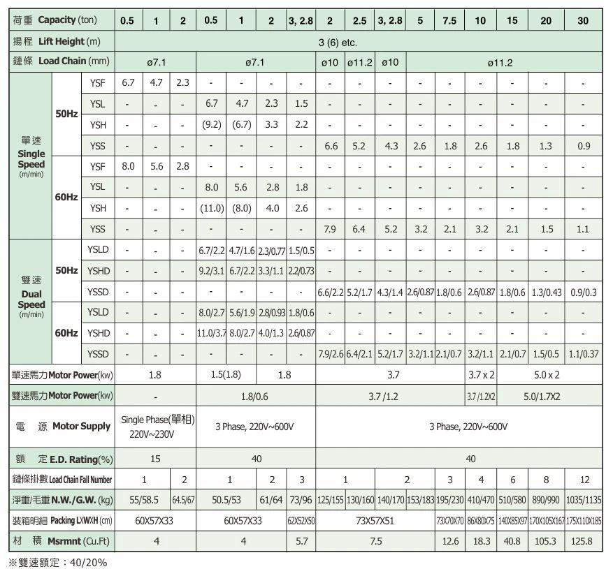 電動鏈條吊車 2t (1 掛)