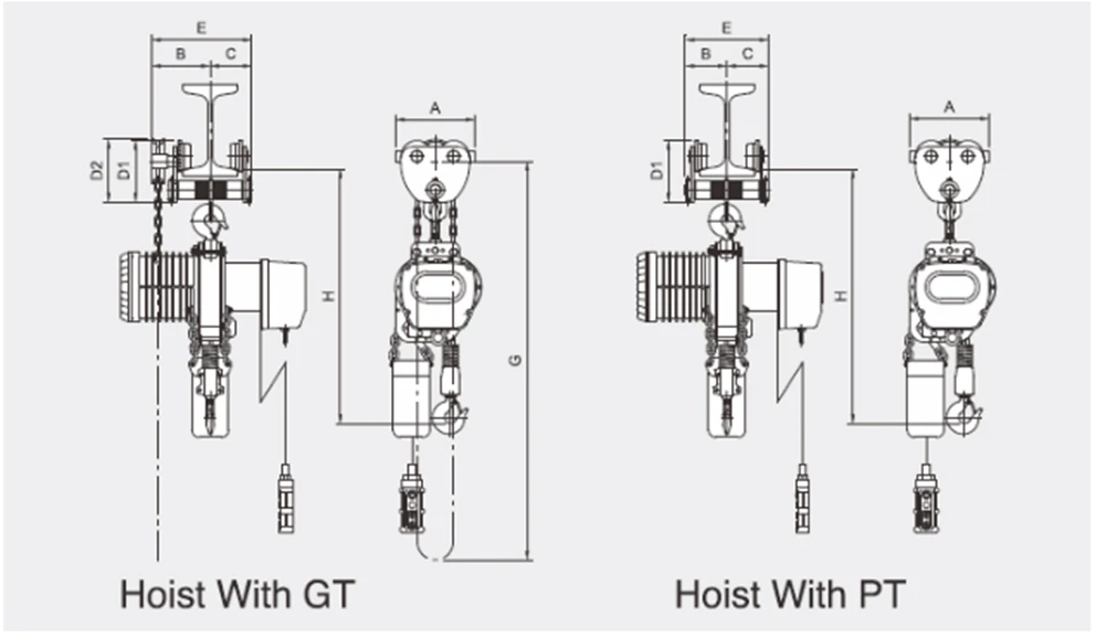 Dimensions of Hoist with GT/PT