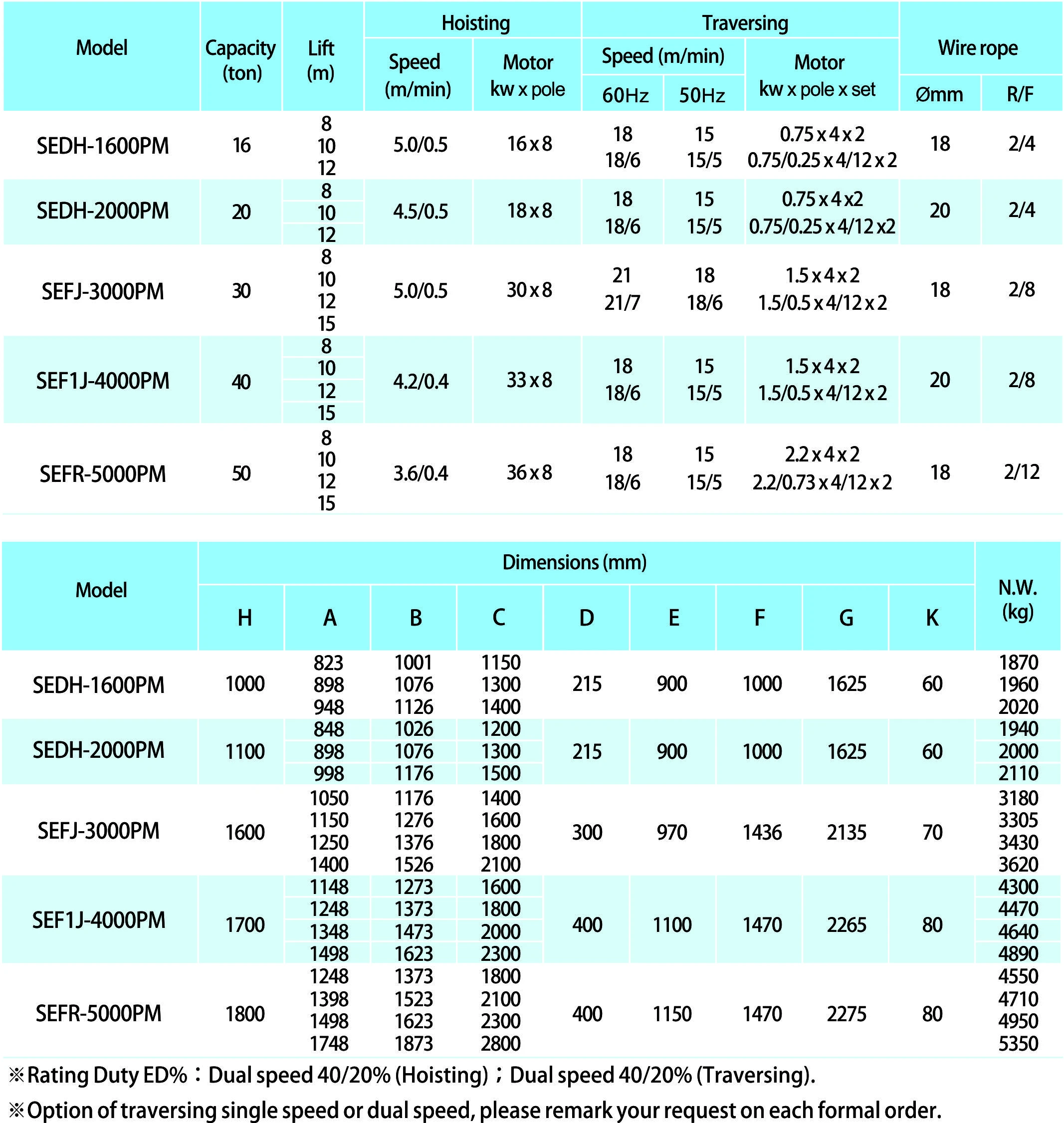 Electric Wire Rope Hoist (PM series) Top Running Type (ED/EF)