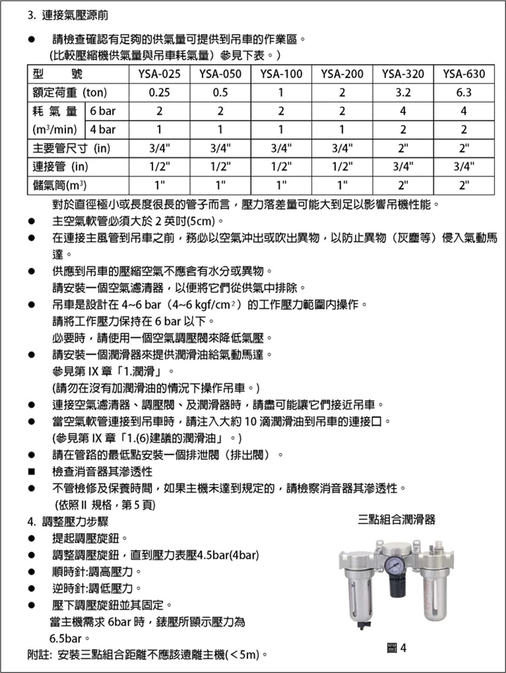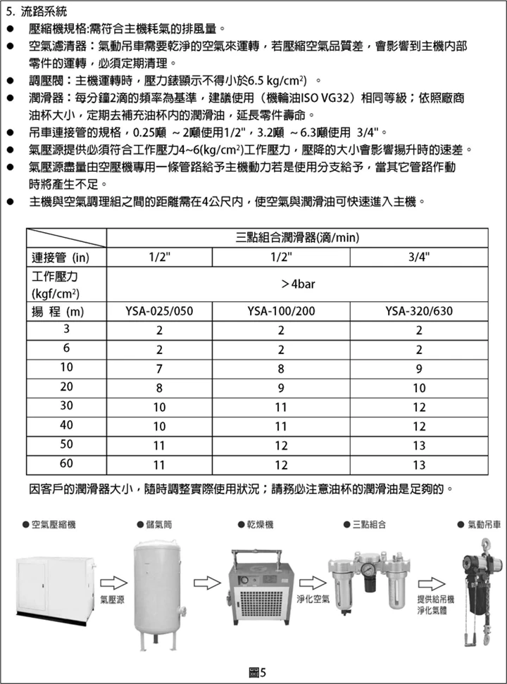 第2代氣動鏈條吊車 YSA-2500~YSA-5000 系列