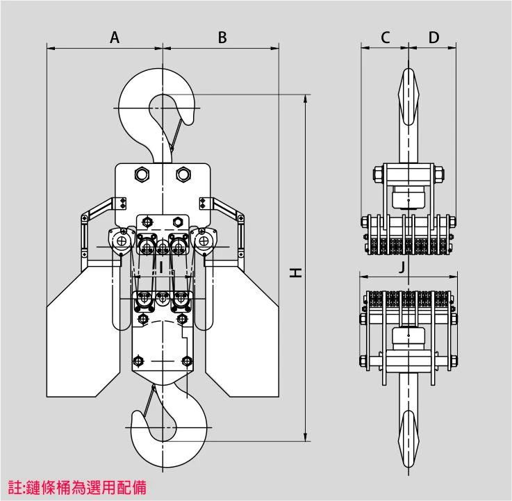 ※Hand chain pulling per lift meter; pulling distances of hand chain to lift load chain per meter when operated two hand chains synchronously.