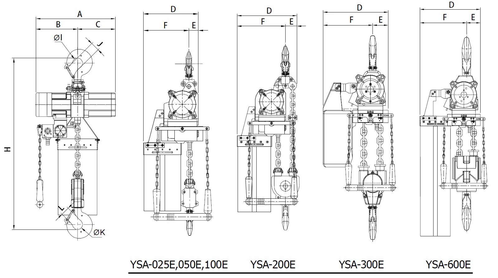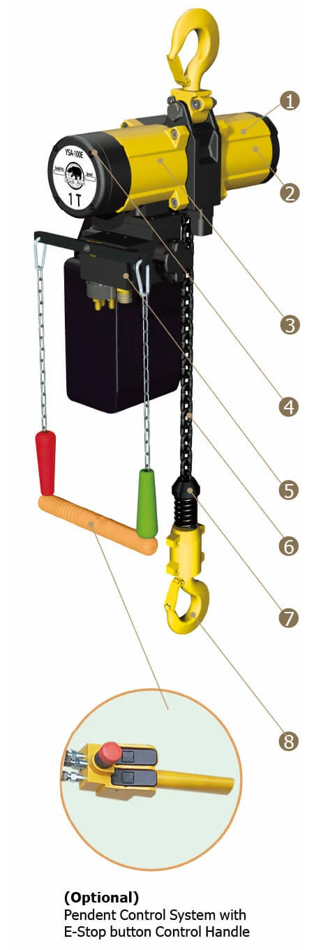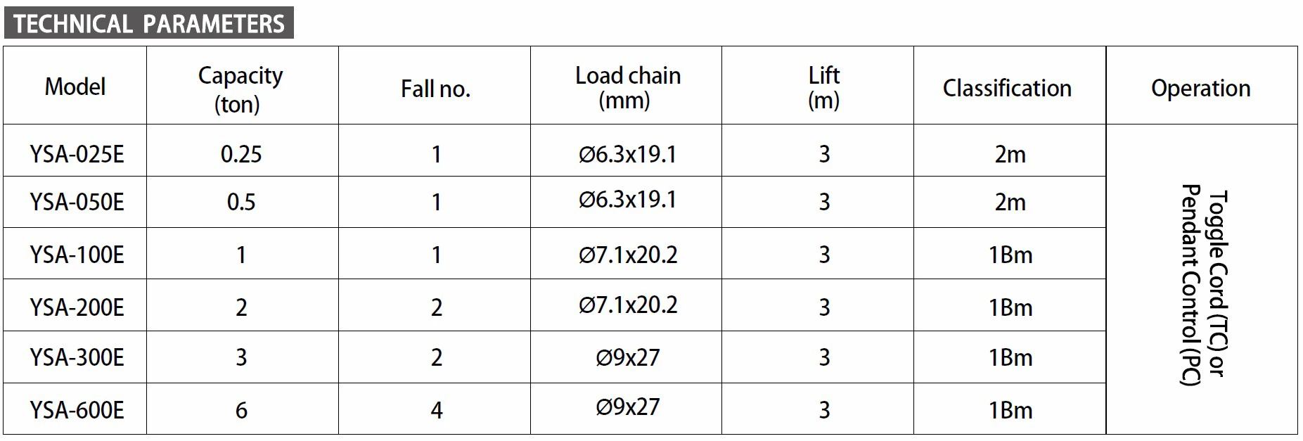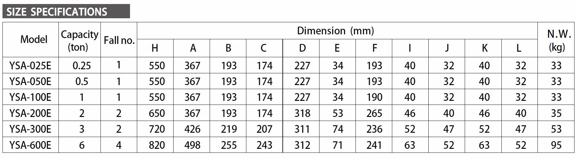 To ensure maximum safety an internally located , adjustable , overload limiter [OL] mechanism, factory pre-set to activate at WLL x 125%, is fitted to all YSA-E models as standard.