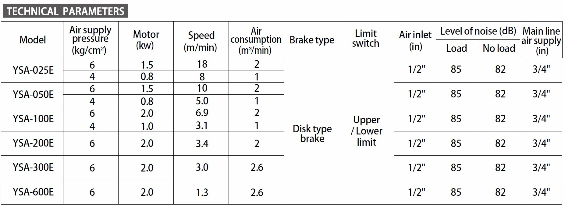 High durability , low friction vane material ensures high hoist performance, long vane life and reduced air motor maintenance.
