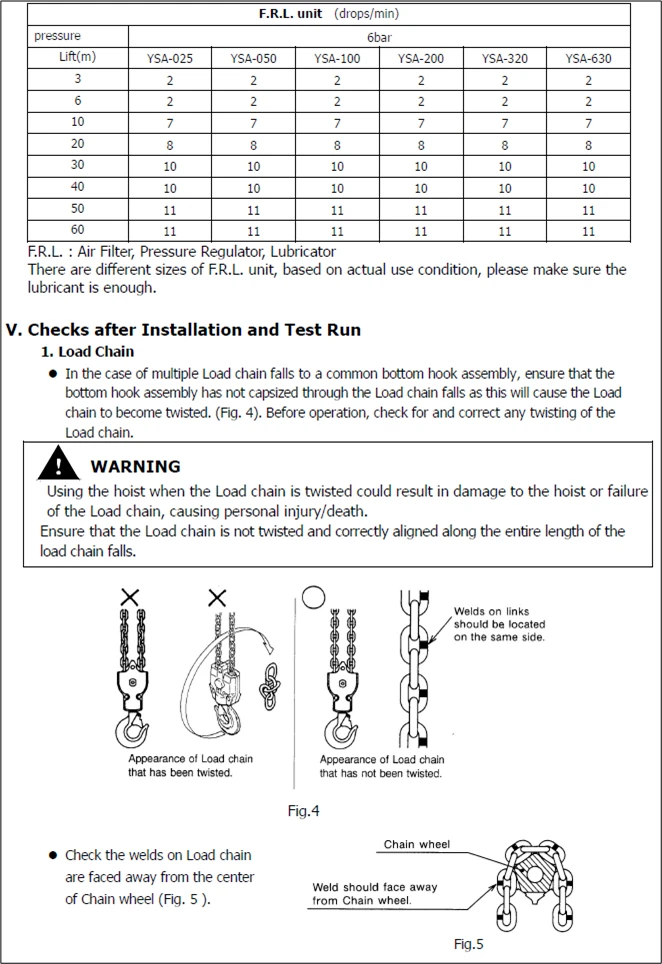Air Chain Hoist (Generation II ) YSA-2500~YSA-5000 series