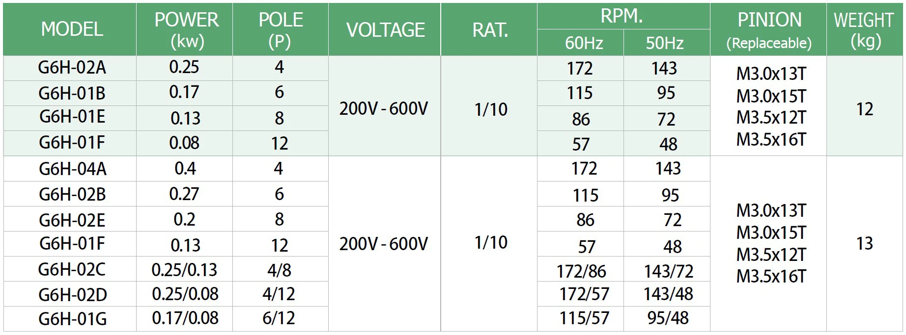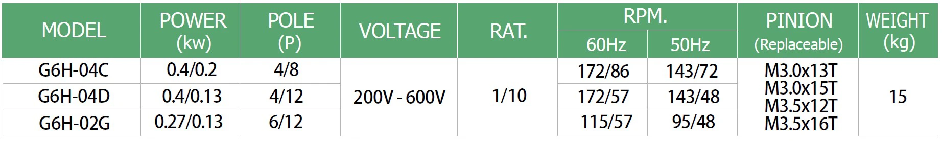 Soft Start / Stop Reduction Gear Motor G6 (Non Soft Start / Stop)