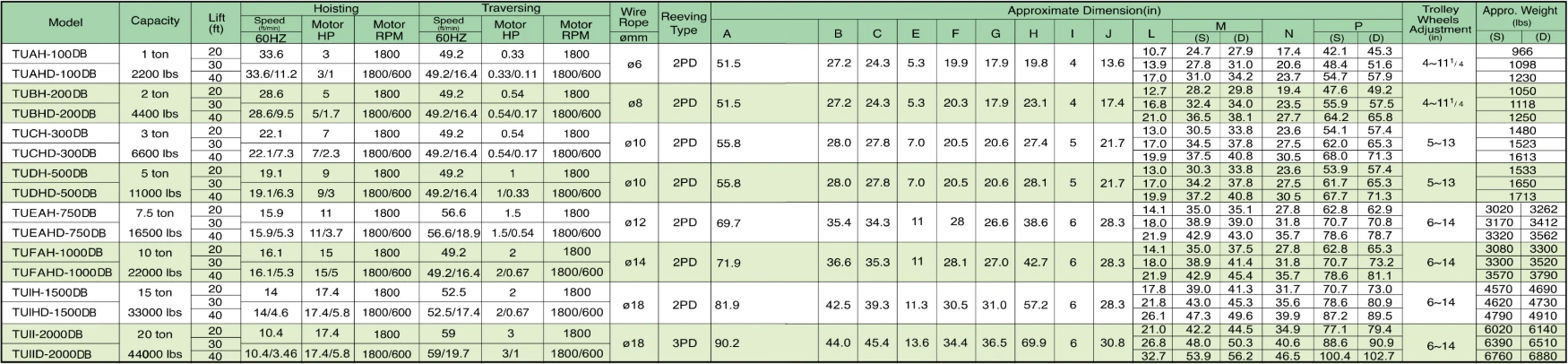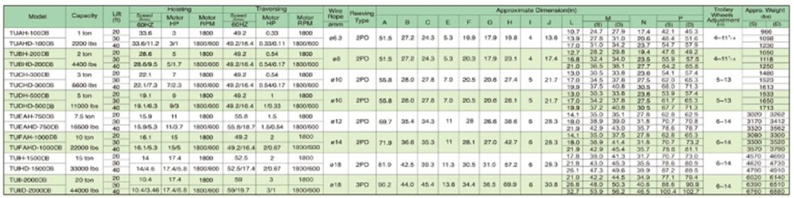 Electric Wire Rope Hoist (USA type) TU (DC-brake)