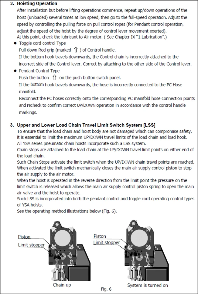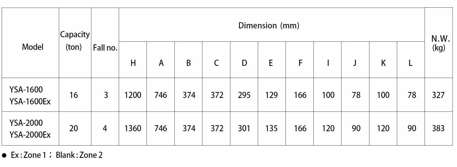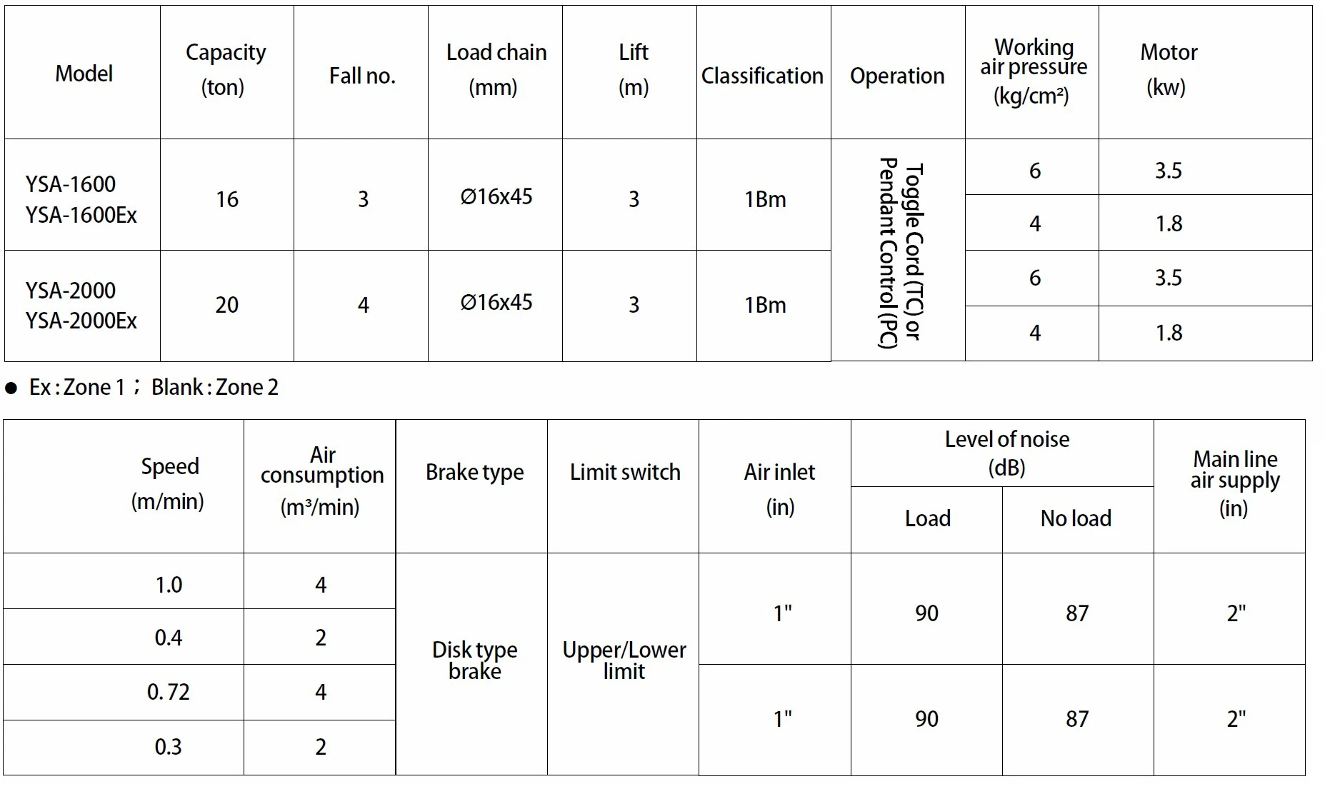 Air Chain Hoist (Generation II ) YSA-1600~YSA-2000 series