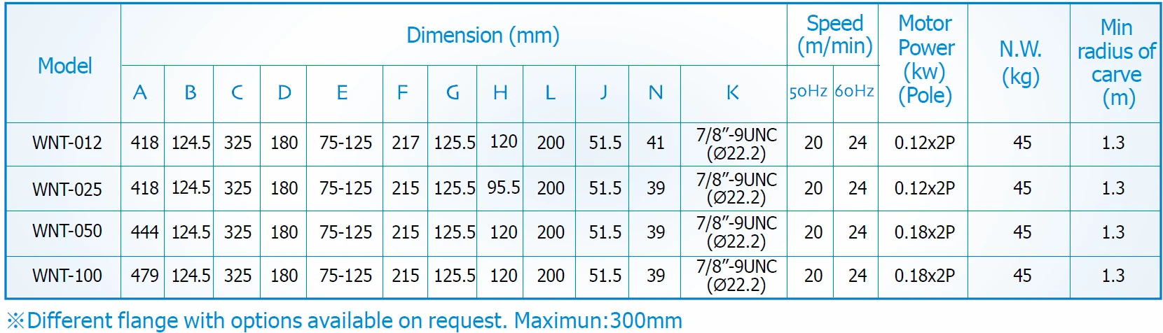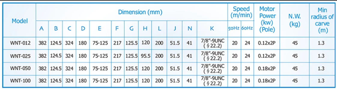 High speed 20m/min, efficient for long lifting. With 10 pocket and 45 degrees lift wheel for chain smoothly operation, our patent.