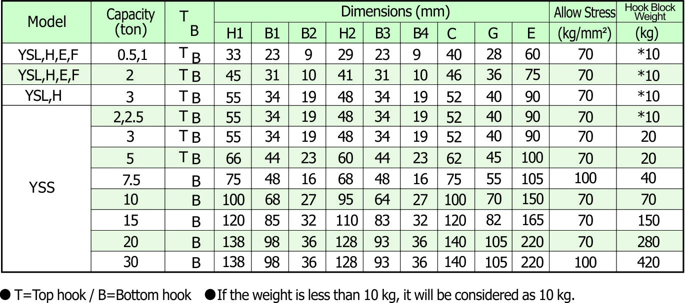 - Optional height available upon request (may be charged extra according to load chain length).