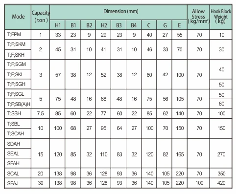 ![]() | 1.AC BrakeNew design of AC brake electromagnetic motor disc system works precisely and synchronously with motors. 2.MOTORHighly efficiently squirrel cage motors of 40%ED rate (40/ 20% for dual speed) are quiet, small volume , light weight and suitable for most applications. 3.Control boxIP-20 control box is applied; Higher IP degree is available upon request. 4.Gear boxHoist reduction gear system are made of alloy steel with surface harden treatment for long lasting life span. 5.Wire ropeAccording to JIS G 3525 standard wire rope applications. 6.Sheave Wire ropeThe proper diameter of sheave ensures the operation and life span of wire rope. 7.HookHot forged hooks with thrust bearing are enable to be swiveled 360° |