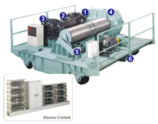 | 1.Electro Magnetic Brake SystemBy using fail safe brake system, when power on then brake off; power off then brake on at the same second. 2.MotorHoisting motor is winding exclusive for a hoisting purpose. Frames are according to IEC specifications and interchangeable. At least "F" insulation class in winding, as such, the motor is always in good insulation, good heat-resistance and proper water protection. It is reliable and safe for high frequency applications. 3.Frequency Changing Speed ControlUsing the electrohydraulic brake to control the initial lowering speed of hoist. The hydraulic action is controlled by the motor secondary winding. When power off, it works as a secondary brake to increase the brake's safety. 4.Gear ReducerAll the gears are designed according to hoisting/crane forward + backward rating requirements, high strength and well anti- wearing. It is good for high frequency usage. 5.Limit SwitchThe up / down limit switch is available. It is screw type mechanical limit switch in harmony with drum's rotating cycle. 6.Trolley TraversingThe driving of trolley is modularized for an easy maintenance. It contains brake, motor, reducing gear box and wheel set. ★ Eddy Current Speed ControlFor a long lasting, a high speed and a large capacity lifting, we utilize the eddy current speed control for a better function of initial lowering speed control. Due to eddy current is without brake lining and no touching, it is long lasting and almost trouble free.