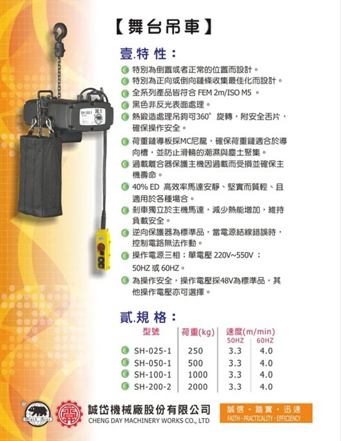 Cheng Day International Group excels in hoisting equipment manufacturing. We have 4 business departments: crane & hoist, elevator, parking system, and heavy duty. We are devoted to marketing plans, product design, manufacturing, tests, installation, and after-sales services.
